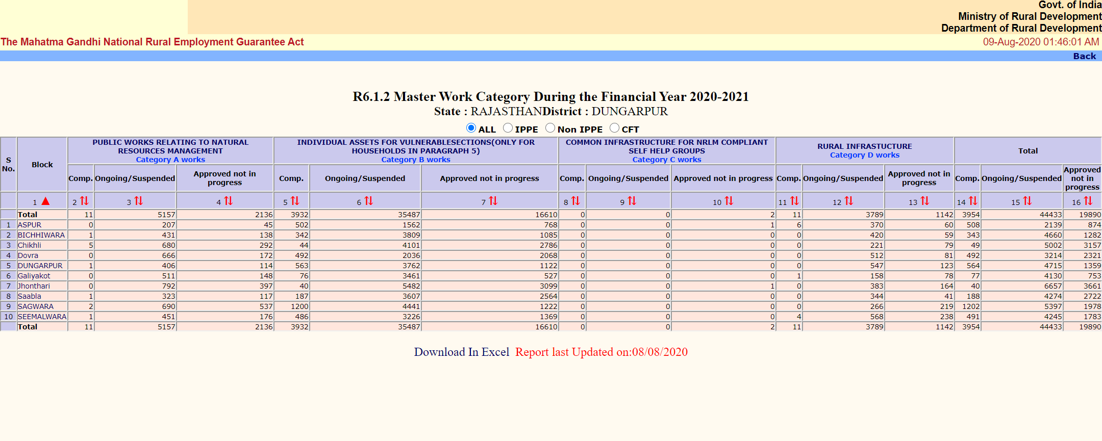 The focus currently is on individual works. For instance, in Dungarpur district, 82% of the works undertaken in the four months of 2020-21 are individual works such as construction of houses under PM Awas Yojana, building toilets and so on.