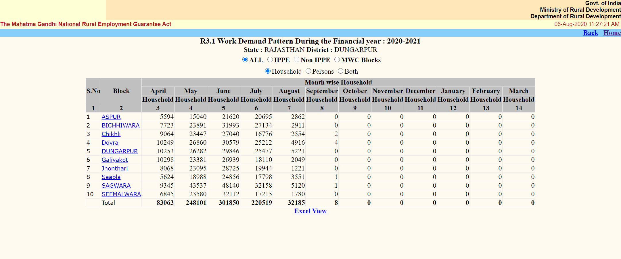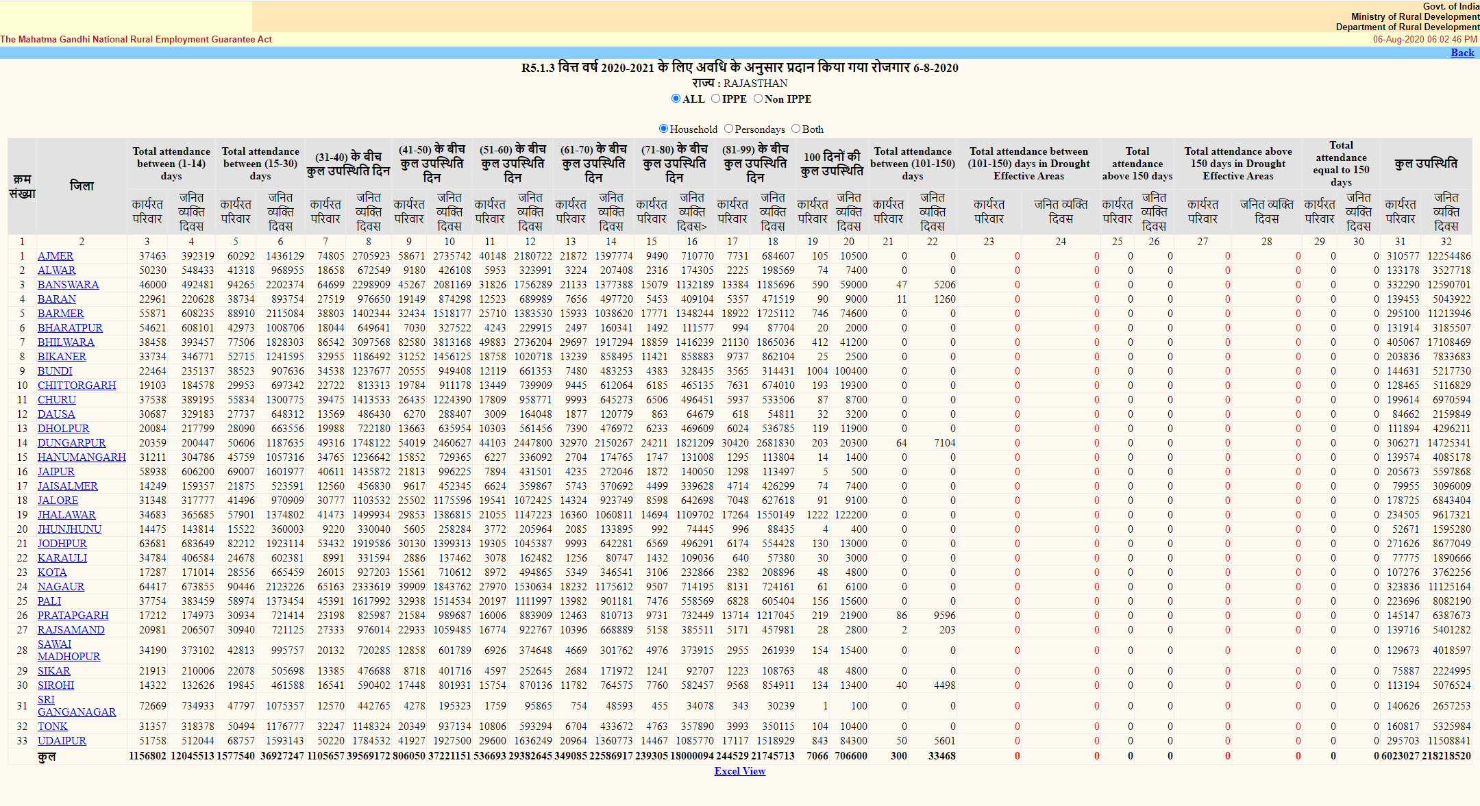 In 2019-20, a total of 23.8 million (23,862,438) households cumulatively demanded MGNREGS work in Rajasthan over a 12-month period, according to the scheme’s employment data released by the Ministry of Rural Development.
