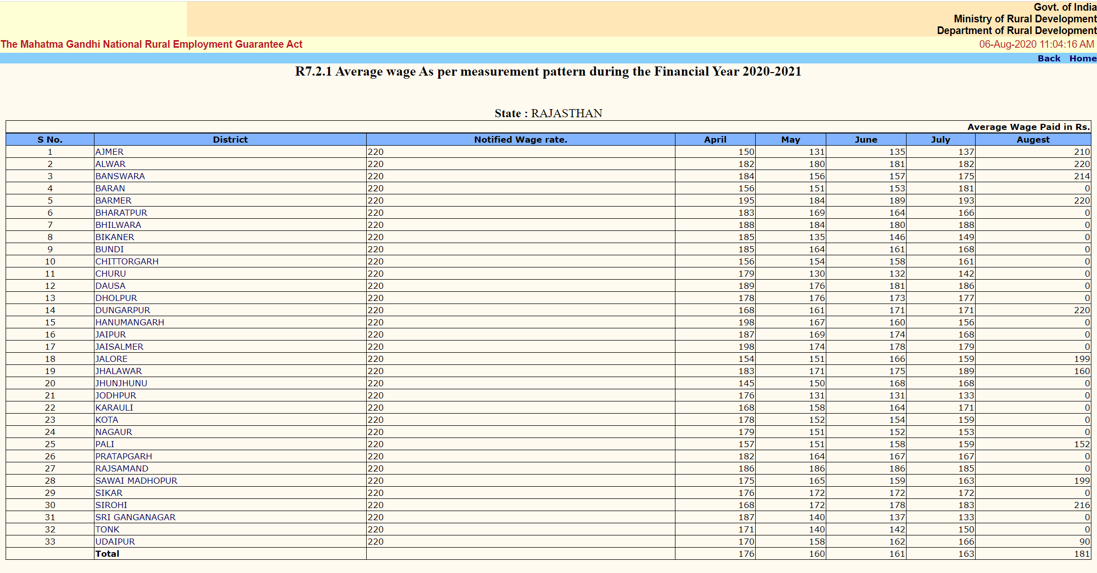 The wage in Dungarpur is lower than the minimum MGNREGS wage rate of Rs 220 in Rajasthan for 2020-21.