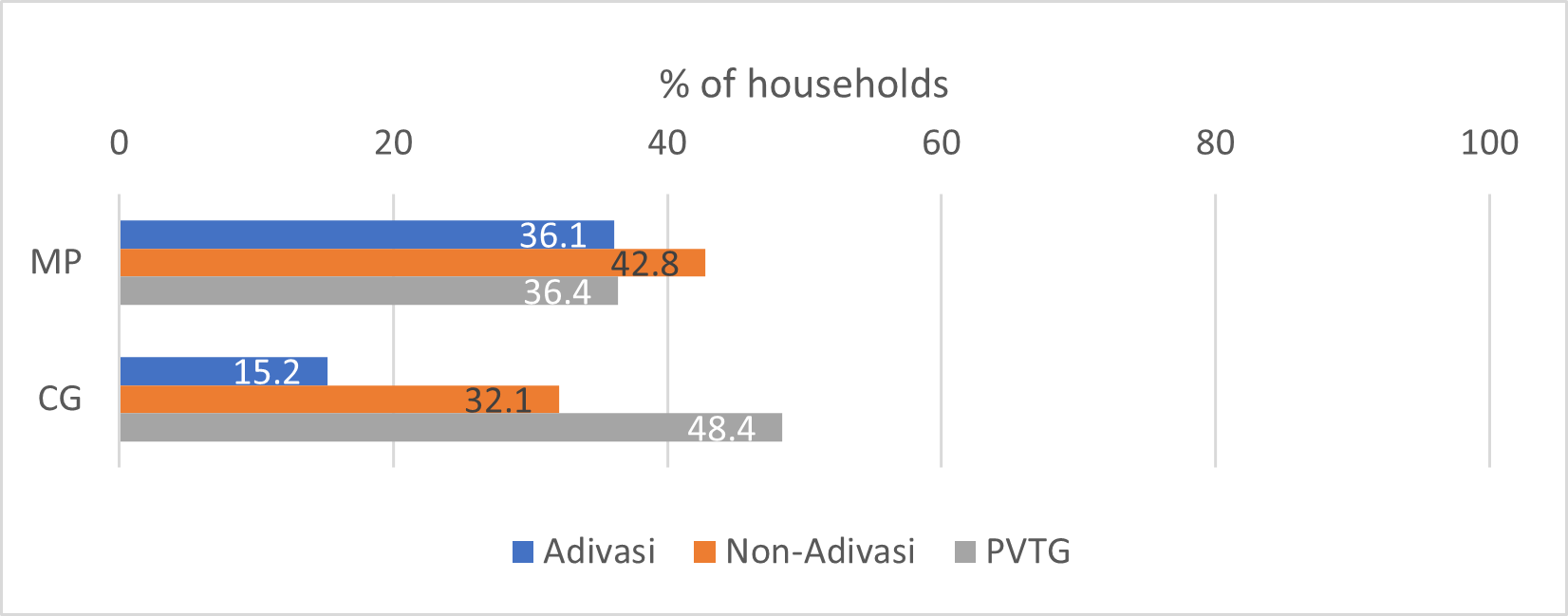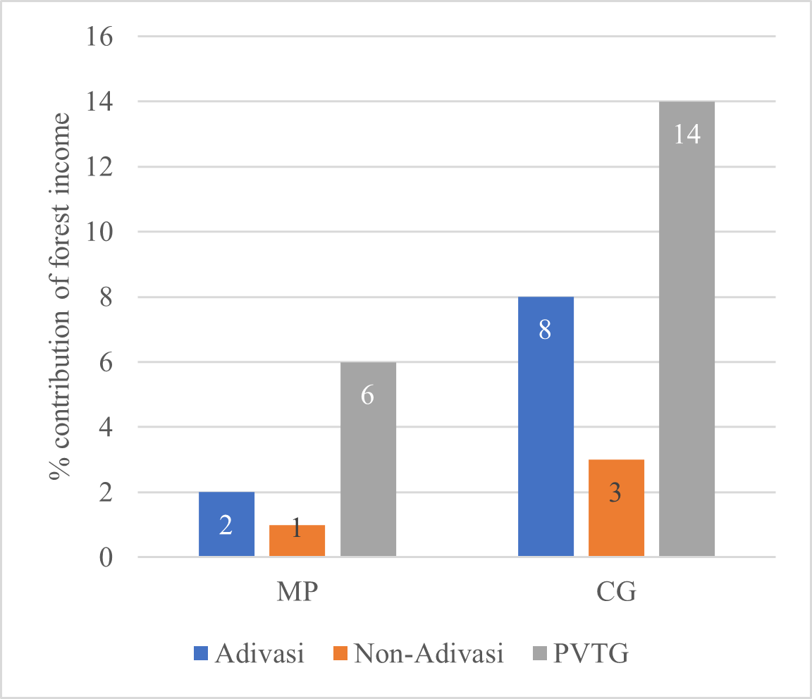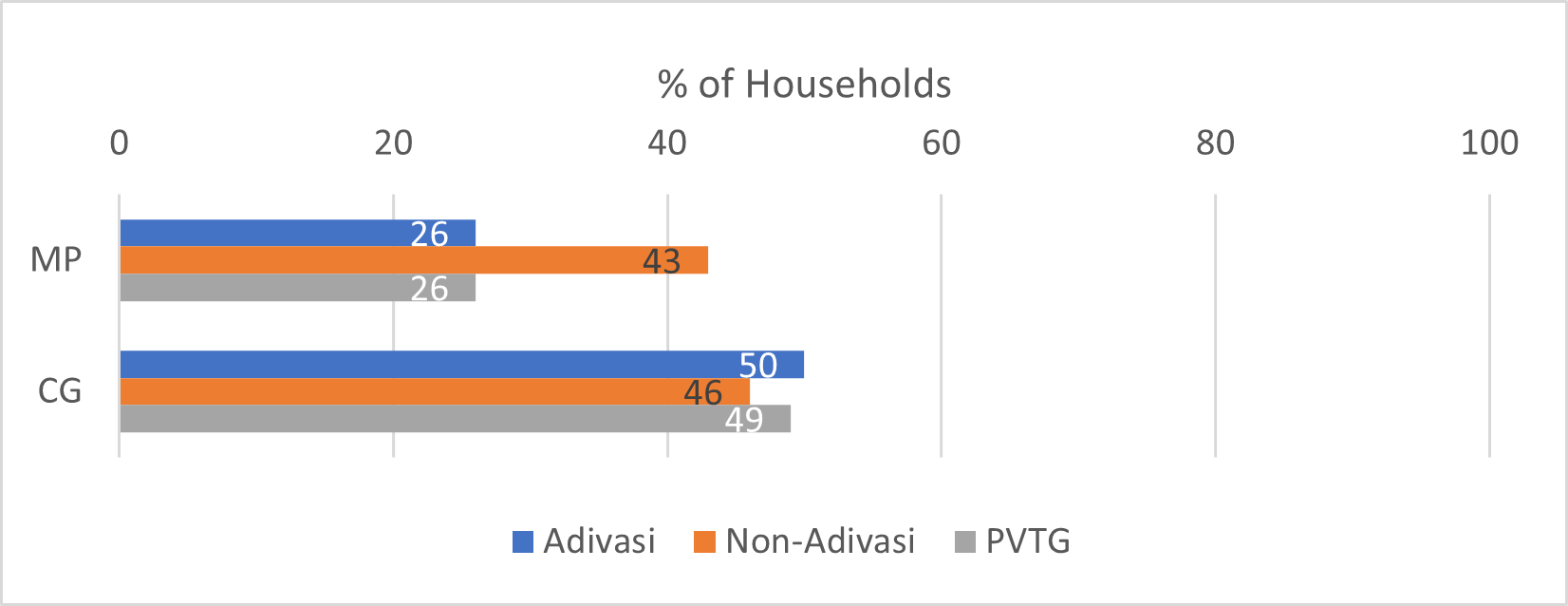 Livelihoods and income: More than 60% of the Adivasi households in MP, 90% in Chhattisgarh and almost all PVTG households in both states report depending on forest products. The majority collect fuelwood, with 98% of households in both states utilising it for personal consumption.