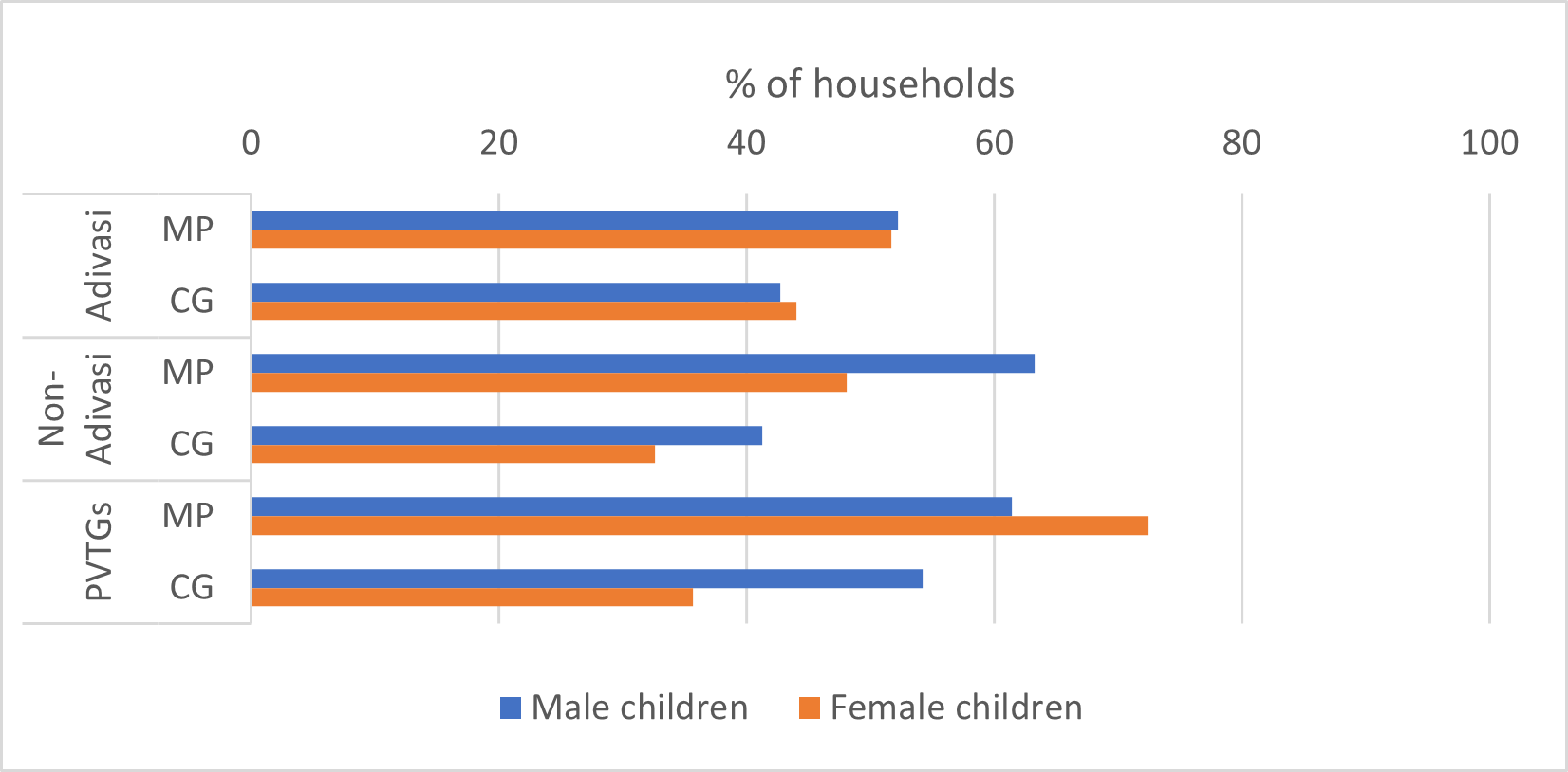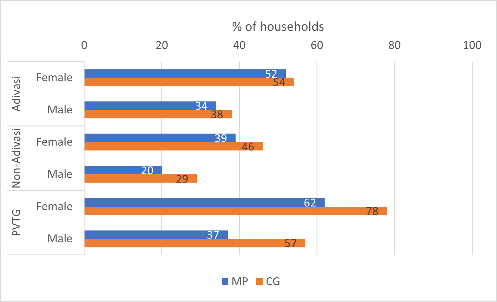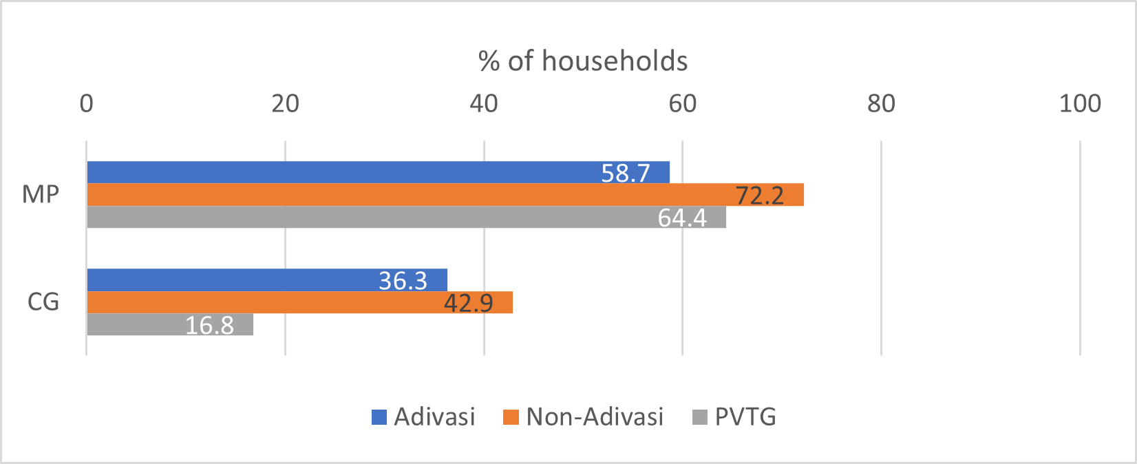 Livelihoods and income: More than 60% of the Adivasi households in MP, 90% in Chhattisgarh and almost all PVTG households in both states report depending on forest products. The majority collect fuelwood, with 98% of households in both states utilising it for personal consumption.